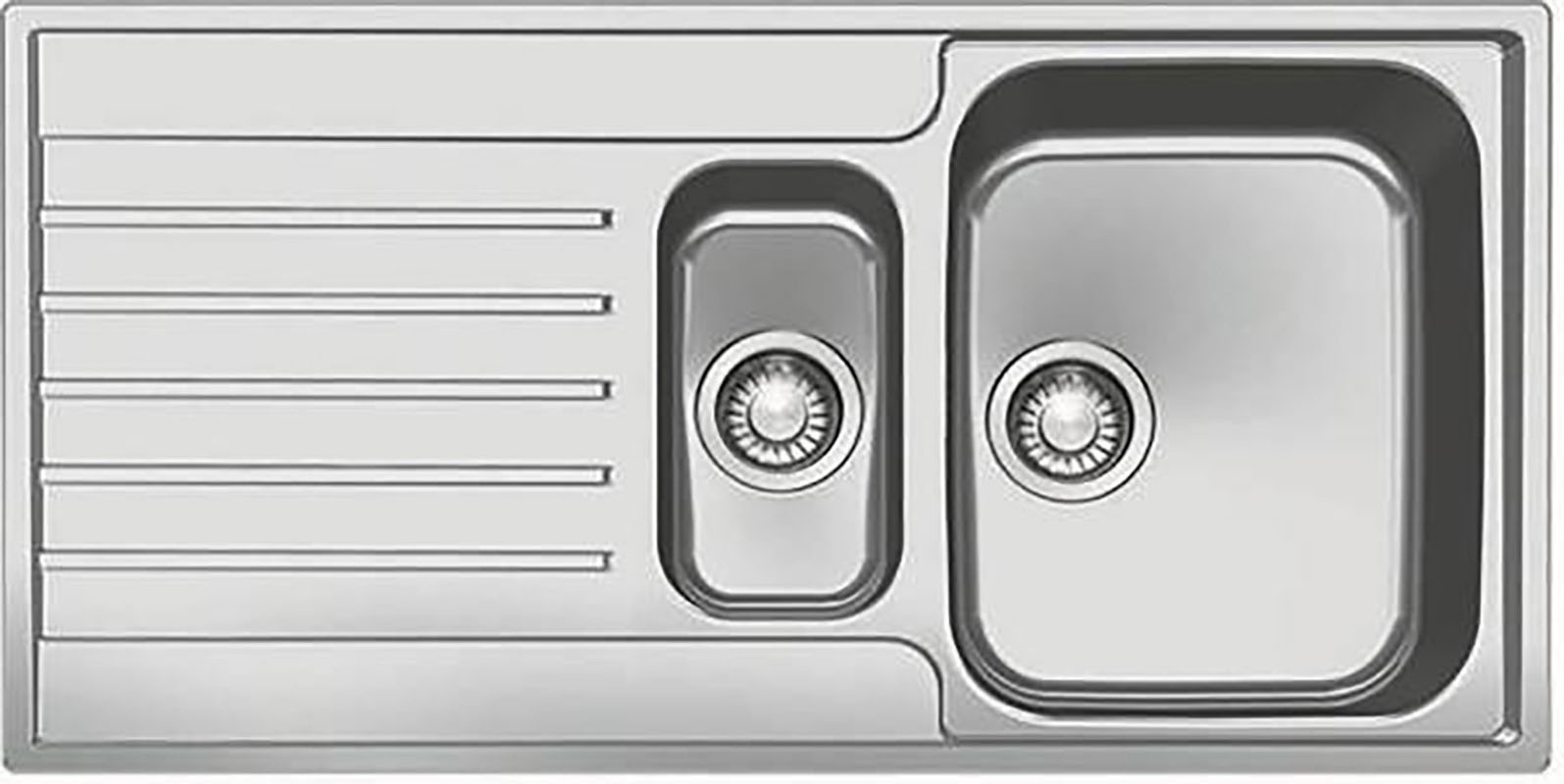 • 1.5 Bowl• Cabinet Size: 600mm• Overall Size: 1000 x 510mm• Bowl Size: 435 x 350 x 175mm• Other Bowl: 300 x 160 x 120mm• Cut Out: 984 x 494 mm• Stainless Steel• Reversible• Waste Kit Included• 10 Year Guarantee