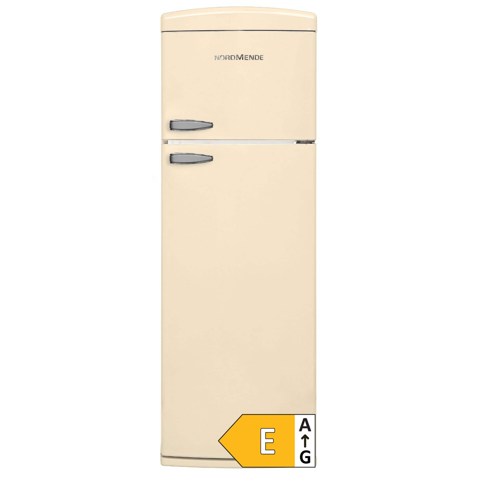 NordMende 605mm Freestanding Retro 1791mm Tall Top Mount Fridge Freezer Gloss Cream