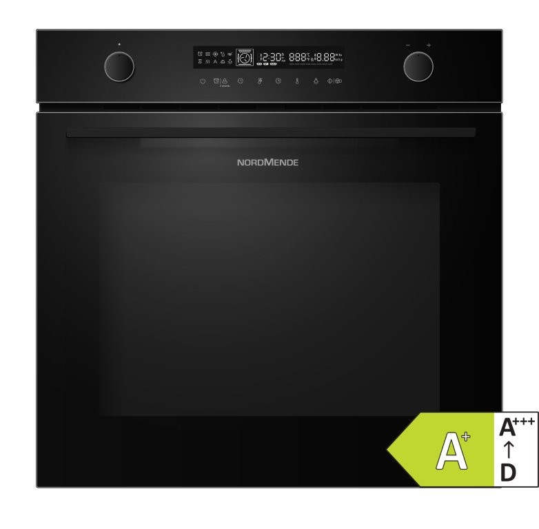 NordMende Built In 72L Multifunction Oven Easy Clean Enamel Digital Programmer Black Glass